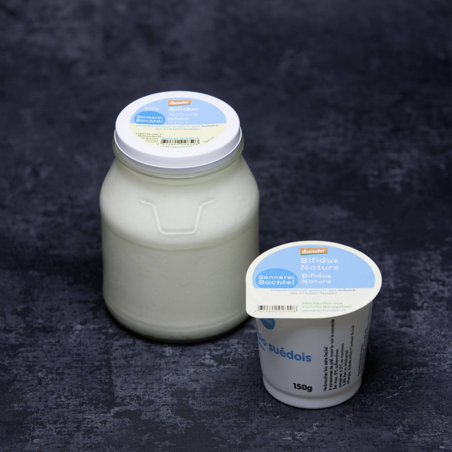 Bifidus (ehemalig Schwedenmilch) erhalten Sie in den Sorten: Mango, Nature und Vanille in zwei verschiedenen Mengen. Himbeer und Mokka füllen wir ausschliesslich in 150 Gramm Becher ab.