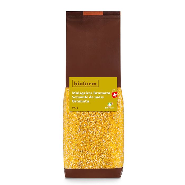 Das grobkörnige Schweizer Maisgriess der Biofarm passt hervorragend in die Schweizer Küche. Aus Biofarm Bramata Maisgriess lassen sich alle Variantionen von Polenta zaubern, speziell gut passt Bramata Maisgriess zu Pilzen. Maisgriess bereichert eine glutenfreie Ernährungsweise.